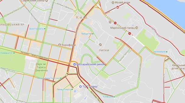 Центр Києва знову стоїть у заторах