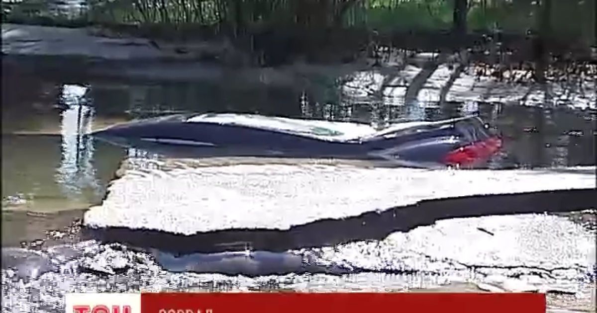 "Ми бачили, як почав провалюватися асфальт, і стала йти вода з-під землі. Машина зразу перехилилася на правий бік, і потім затягло уже як би під асфальт", - розповів студент Максим Жоголь.