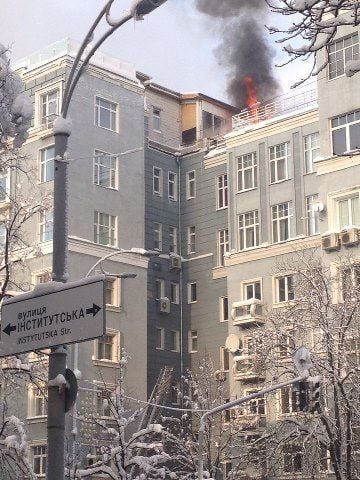 В центрі Києва горить багатоповерхівка, розташована біля Нацбанку та навпроти комітетів Верховної ради.