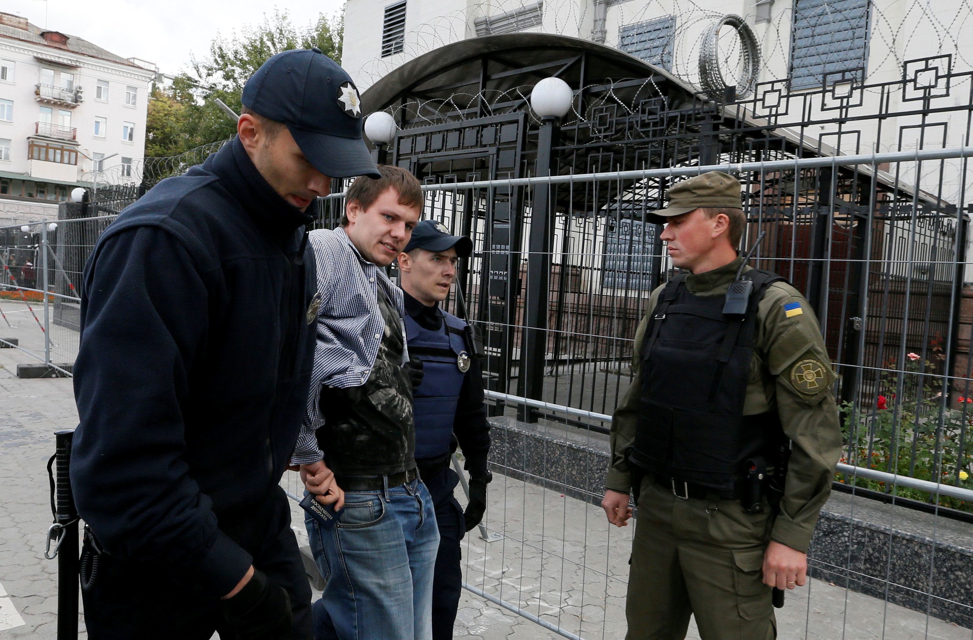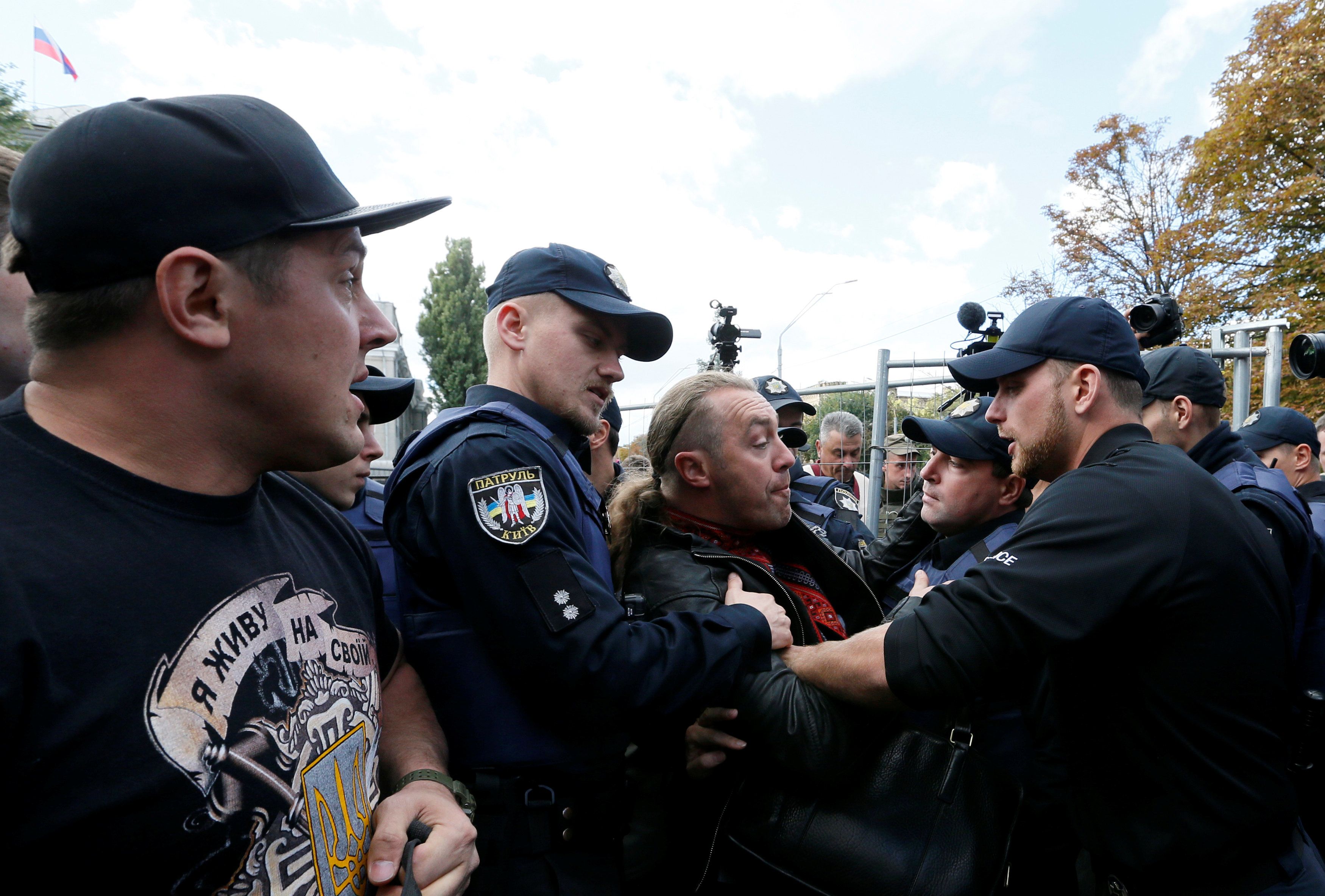 "Геть звідси, москаль!": під російським посольством у Києві побили виборця Держдуми