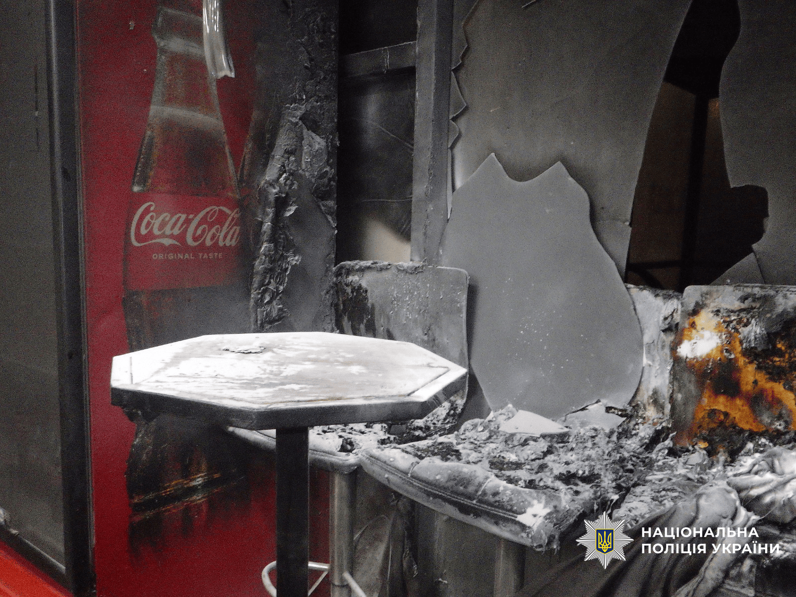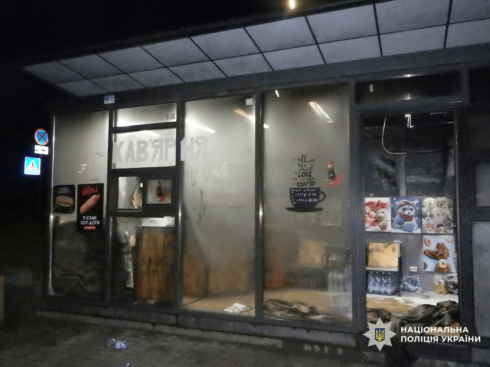 Правоохоронці з’ясували, що вночі невідомий підійшов до закладу, розбив каменем вітрину та кинув усередину пляшку із займистою сумішшю. Внаслідок цього було пошкоджено внутрішнє оздоблення приміщення та майно кав’ярні.