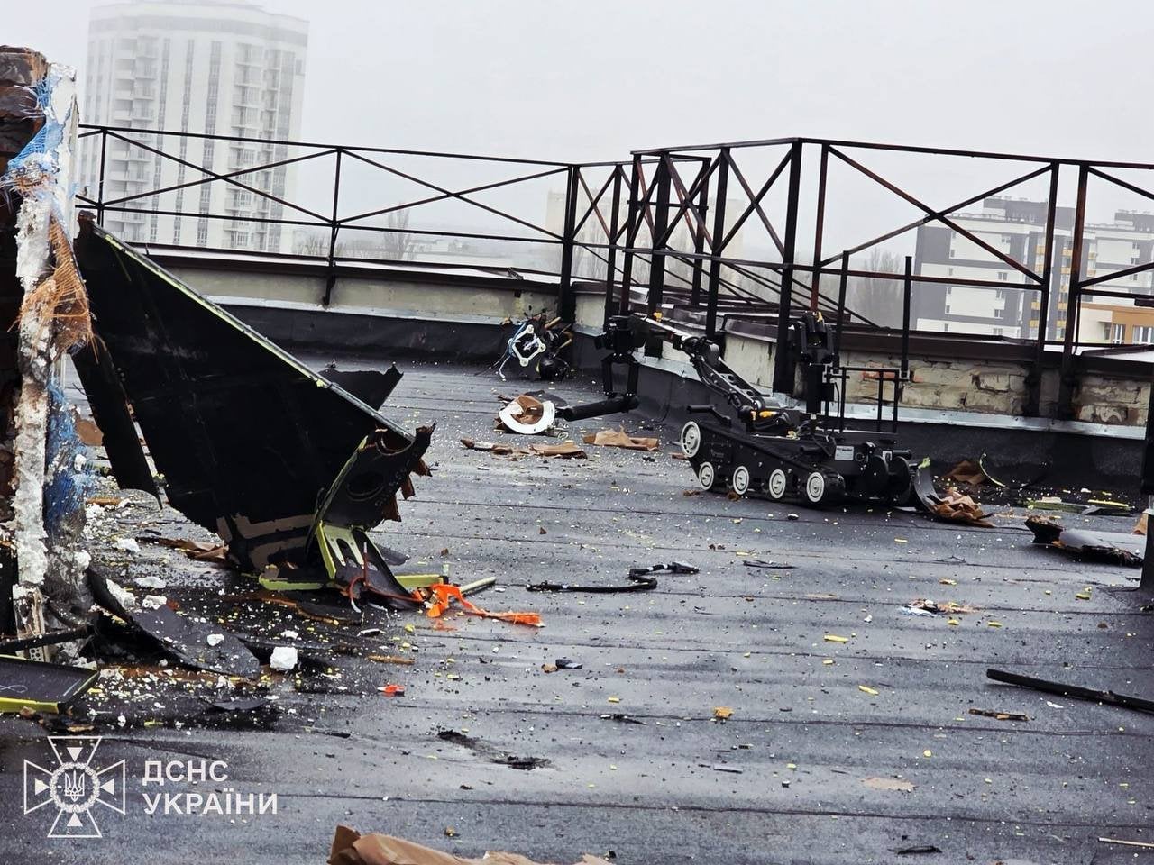 Один із російських БпЛА влучив у дах багатоповерхівки, але не вибухнув. Унаслідок удару на покрівлі будинку залишилися пошкоджений дрон, його бойова частина та 21 касетний боєприпас. Ще один небезпечний елемент упав у двір житлового комплексу.