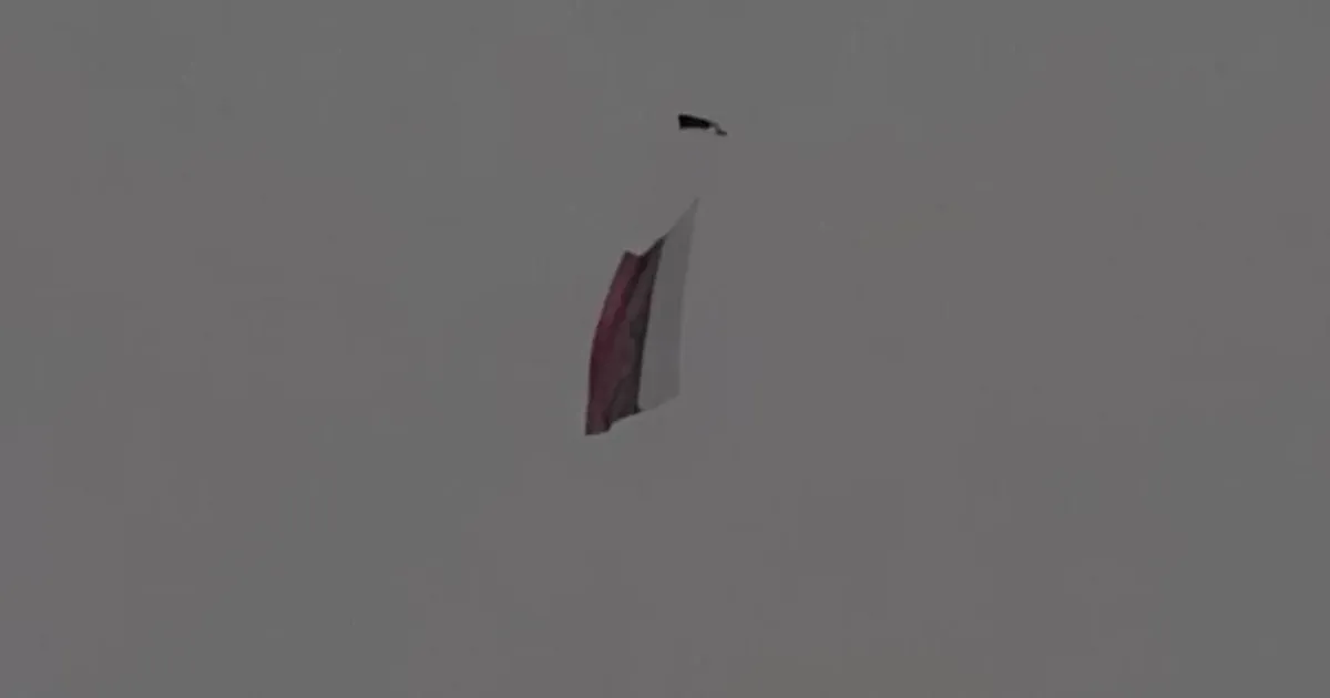 У поліції підтвердили, що хтось запустив безпілотник з триколором і він кружляв у київському небі.