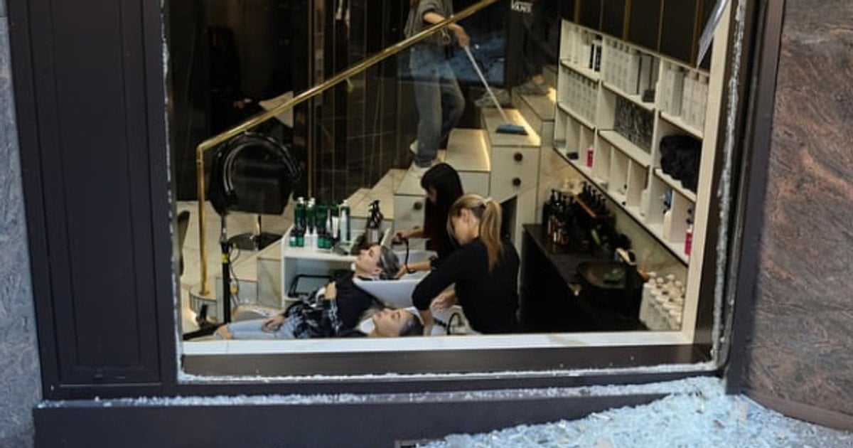 Втім, у Мережі з’явилися кадри, на яких салон краси продовжує обслуговувати клієнтів попри вибиті вікна та скло довкола.