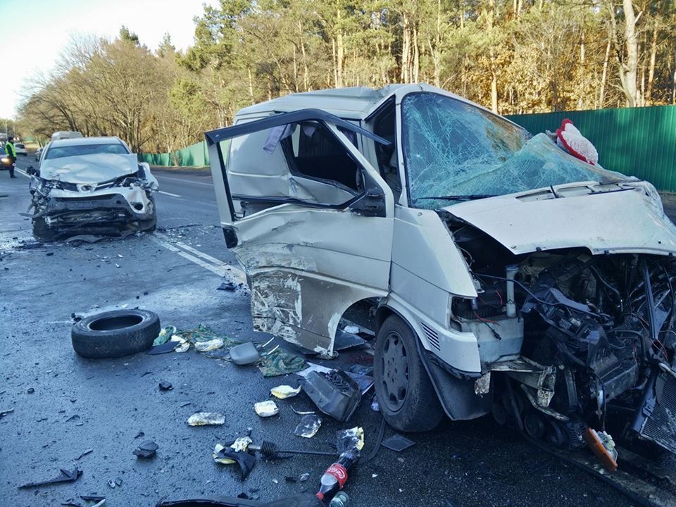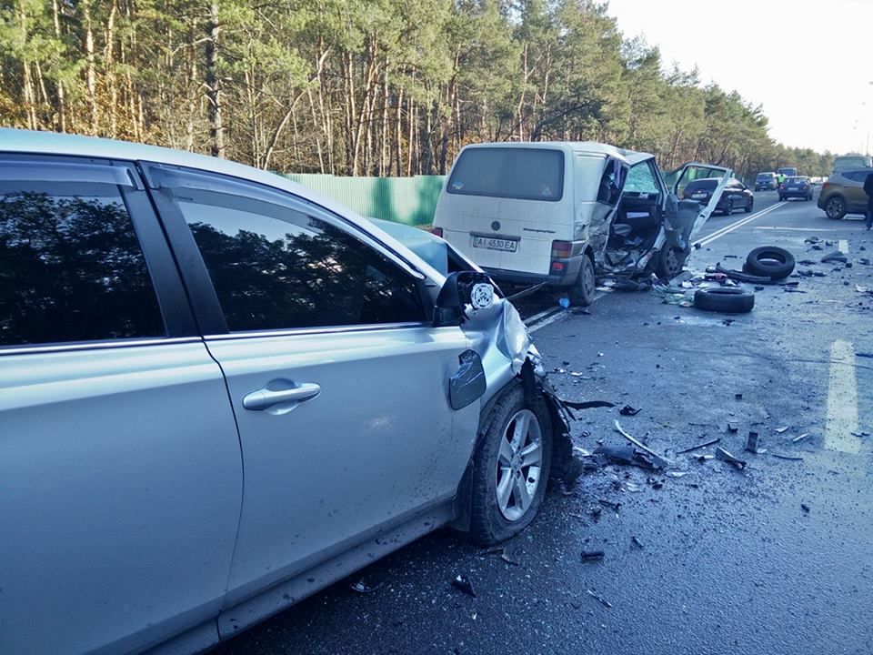 На Київщині сталася масштабна аварія, у якій зіткнулося п'ять авто: Ford Transit, Нyundai Santa Fe, Volkswagen T4 і два Toyota RAV4. ДТП сталася близько 8.15 ранку дорогою на Кончу-Заспу, неподалік тренувальної бази "Динамо".