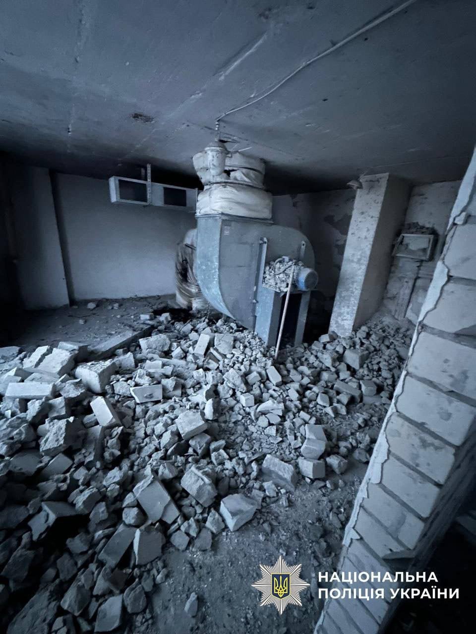 На місці події працюють слідчо-оперативні групи районного управління, які документують наслідки атаки та фіксують пошкодження.