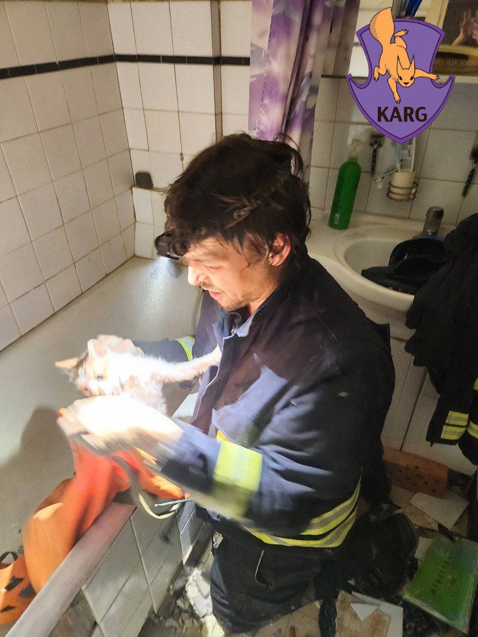 Другого кота після вибуху заблокувало під ванною, але і його вдалося дістати. Тварина надихалася диму і має легкі подряпини.
