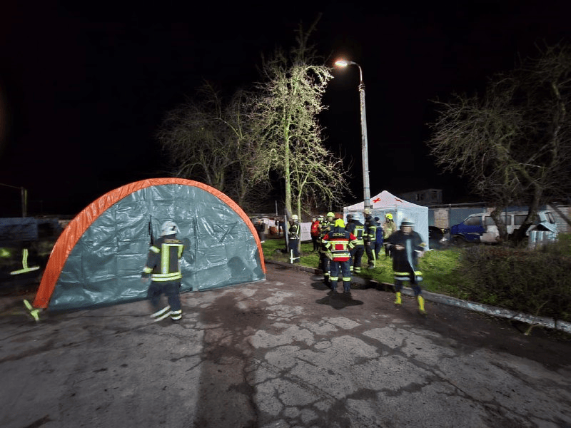 Для обігріву та підтримки постраждалих на місці події розгорнуті намети ДСНС. Усі відповідні служби працюють безперервно.