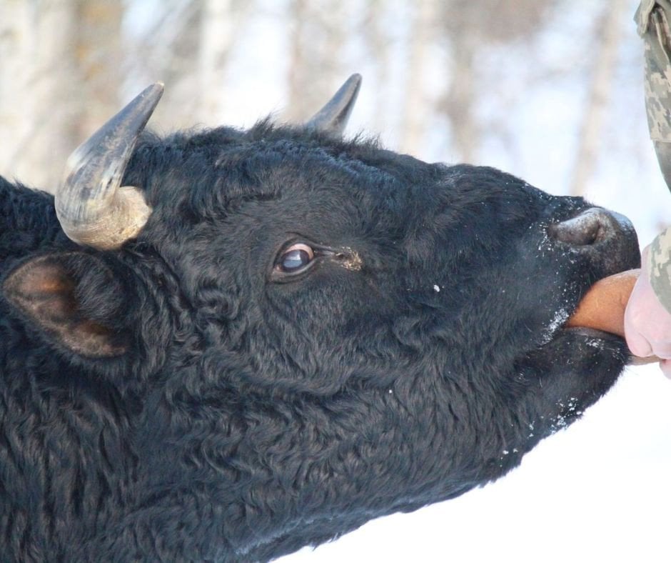 «Сліди на снігу розповіли про нічний візит чотирьох вовків, які підходили впритул до стада. Втім, тварини виявилися не такими вже й беззахисними. Один із биків після цього пішов по вовчих слідах, очевидно, перевіряти територію та продемонструвати свою силу. Справжній охоронець і беззаперечний лідер!» — йдеться у повідомленні.