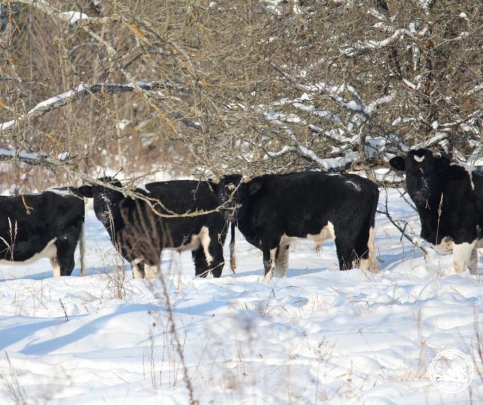 Суха торішня та зелена рослинність допомагає протриматись коровам до весни / © Чорнобильський радіаційно-екологічний біосферний заповідник