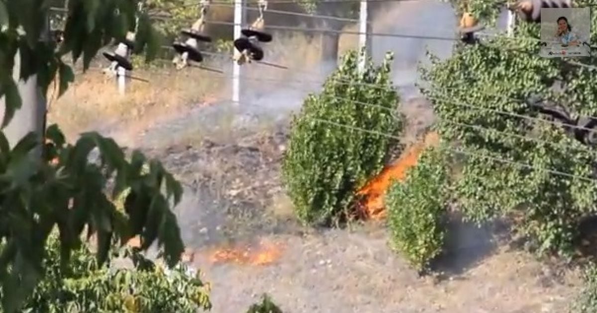 Палає суха трава та кущі.