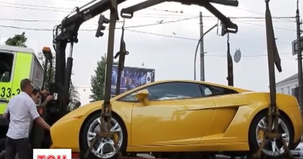 У центрі Києва Lamborghini евакуювали з трамвайних рейок