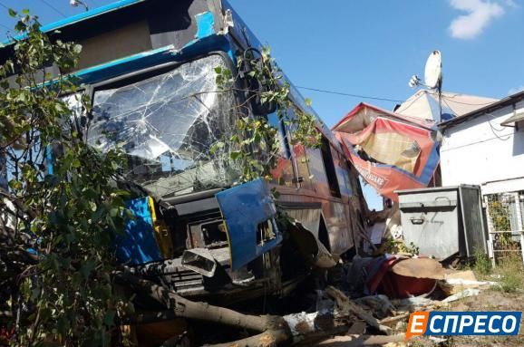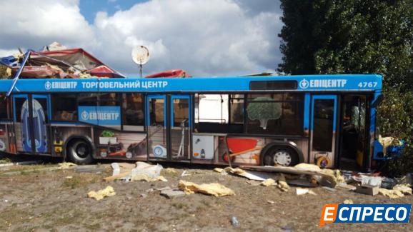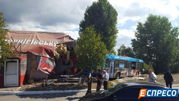 У Києві міський автобус з пасажирами влетів у кафе, є постраждалі