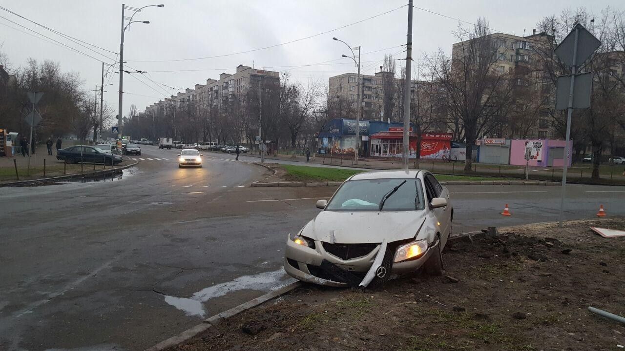 У суботу, 1 квітня, у Киві в Деснянському районі на перехресті Лісового проспекту та вул. Мілютенко автомобіль Mazda 6 із компанією молодиків, ймовірно, на підпитку вилетів на зелену зону. Про це повідомляють Вартові.Еспресо.