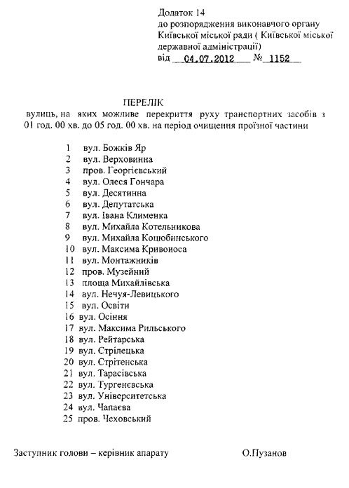 зокрема, 25 столичних вулиць можуть закрити для транспорту з 01:00 до 05:00.