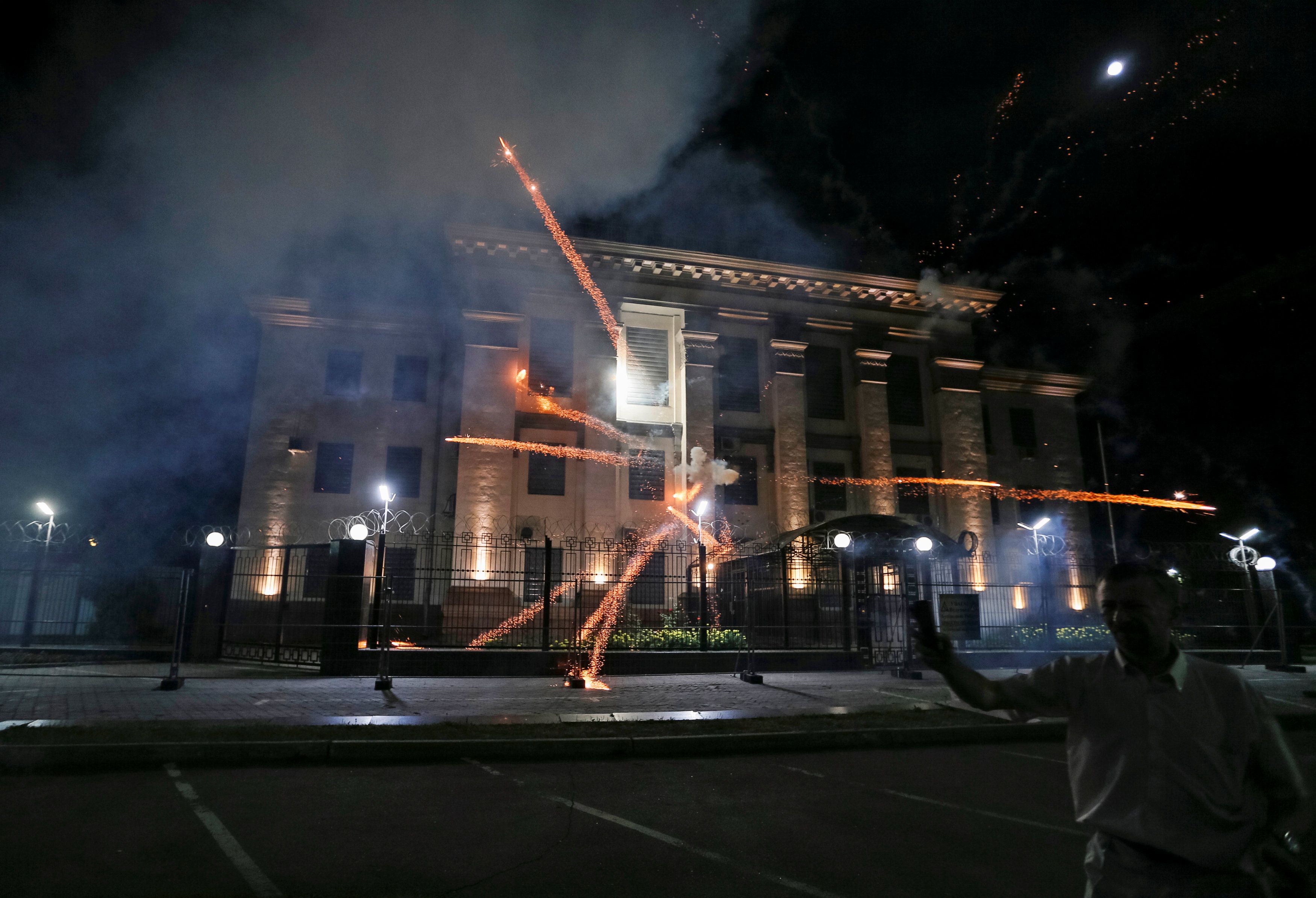 17 вересня близько першої години ночі група людей атакувала російське посольство у Києві.