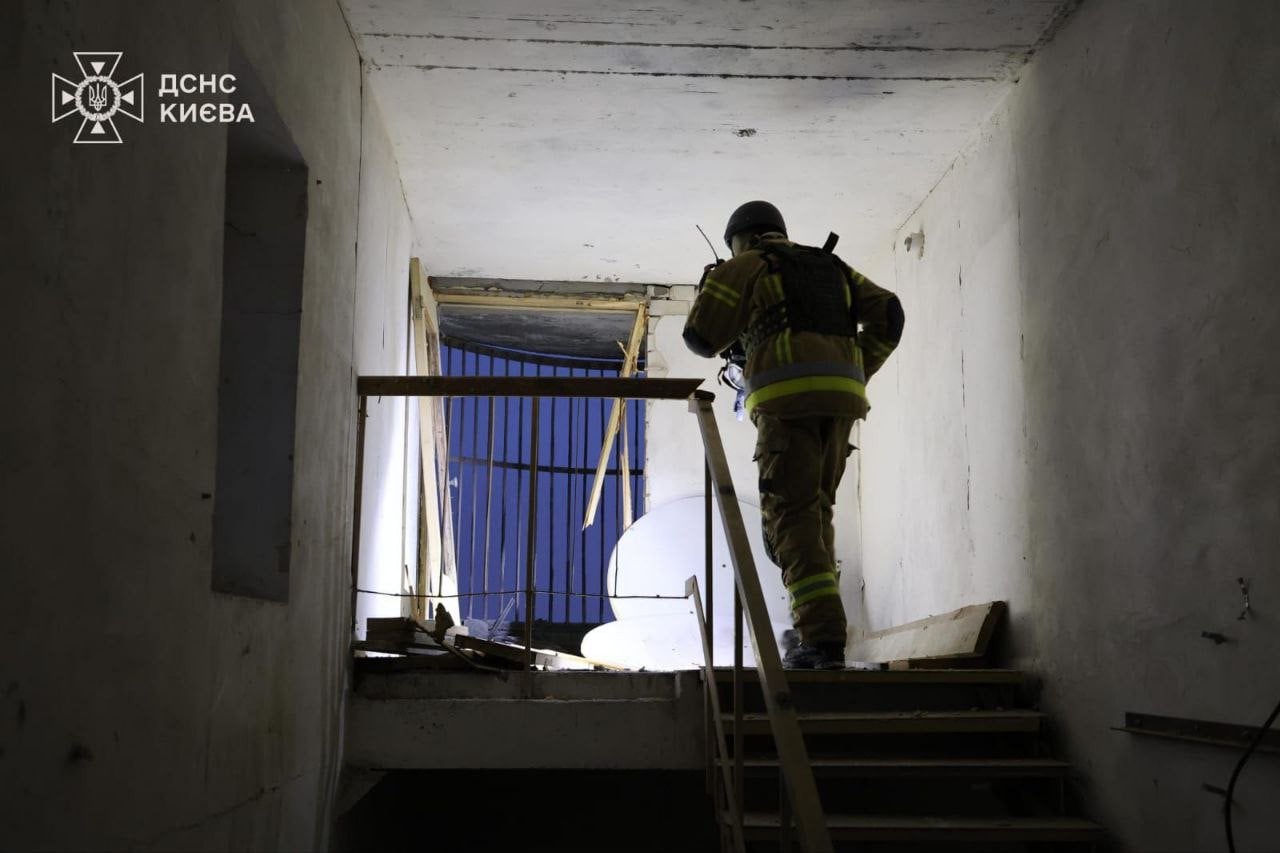 За даними рятувальників, влучання сталося на рівні технічного поверху. Зафіксовано руйнування стіни. Займання не сталося