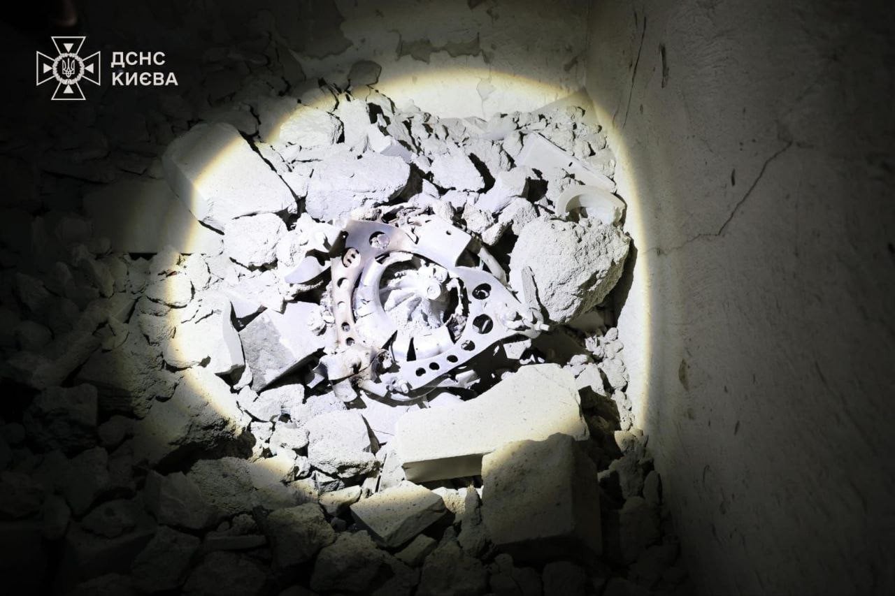 Уламки дрона влучили у багатоповерхівку в Києві: фото