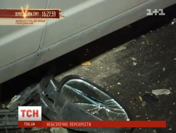 Під час аварії, що сталася в центрі Києва ввечері у середу, 23 жовтня, два автомобілі силою удару винесло на тротуар, де стояли пішоходи, йдеться у сюжеті ТСН.19:30.