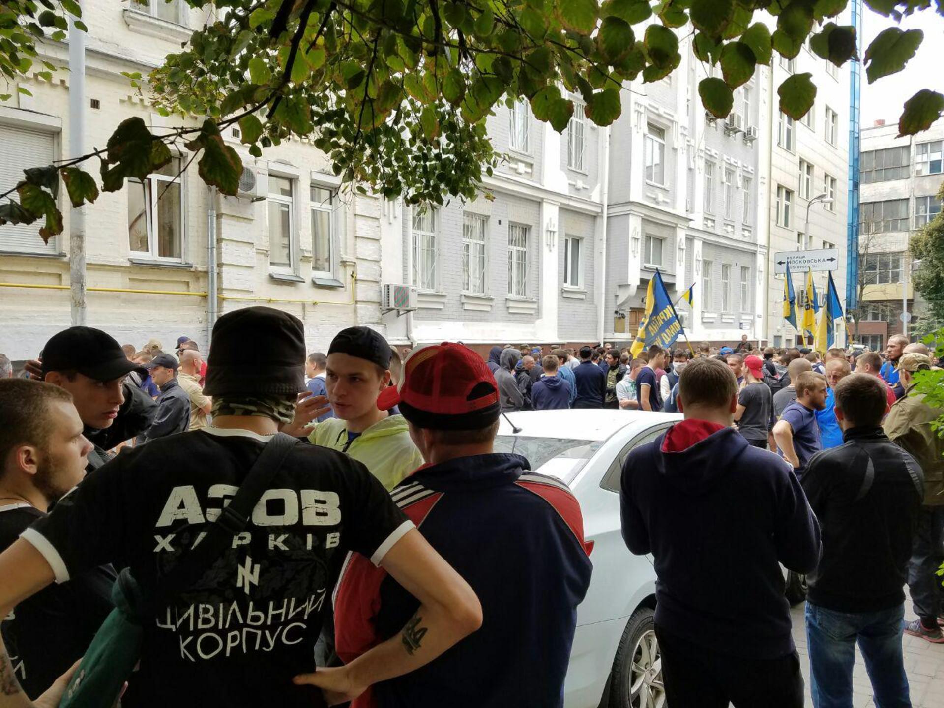Під час засідання біля будівлі Печерського суду "азовці" проводили мітинг під наглядом півсотні правоохоронців. Запалювали файєр. А після того, як Філімонова випустили, пікетувальники знову прийшли під "Київміськбуд".