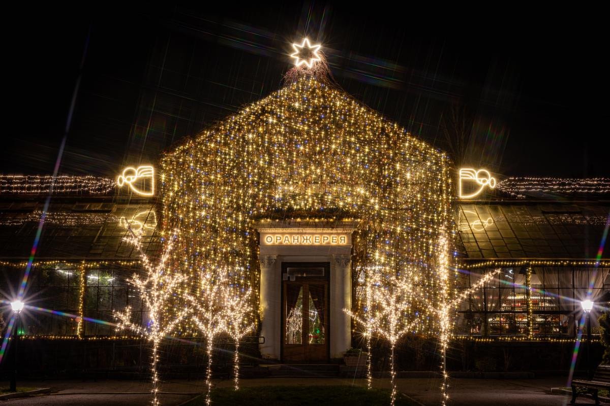 Дива відбуваються і в Оранжереї на ВДНГ. Тут завжди тепло й затишно: простір прикрашений святковими вогнями та наповнений приємним ароматом живих рослин. Окрім візуальних елементів, є й інтерактивна частина: фотоквест із пошуку чарівних жителів, зони для читання, гри в шахи та навіть написання листів Святому Миколаю або Санті, а також інтерактивна виставка запахів Різдва. Особливого затишку додає ресторан «KVITKOVA.Оранжерея» — із сезонними стравами, напоями й святковими ароматами.