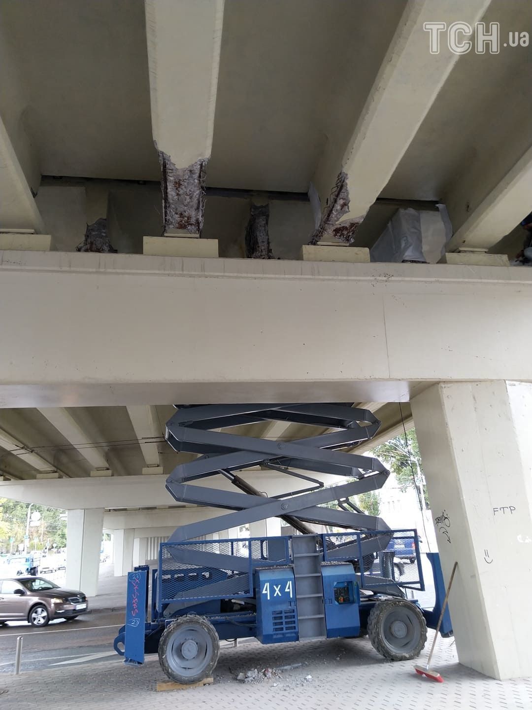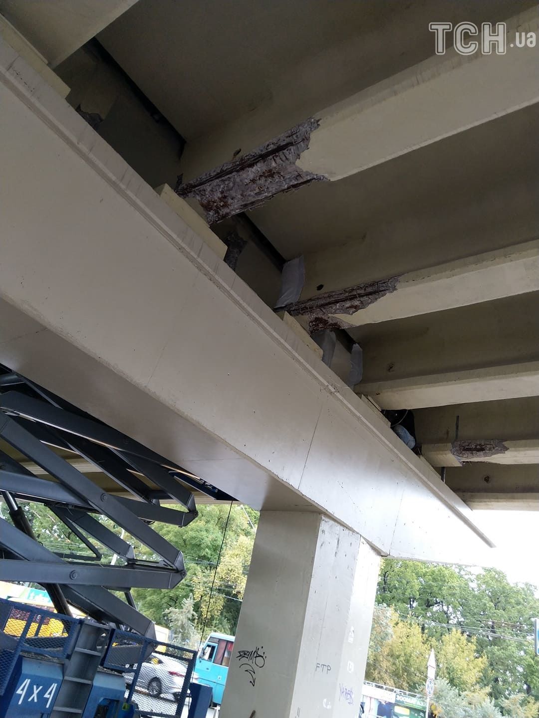 На мосту, що розташований поблизу метро "Нивки" у Києві, почались ремонтні роботи. Днями містяни помітили, що від балок конструкції відкололись шматки бетону.