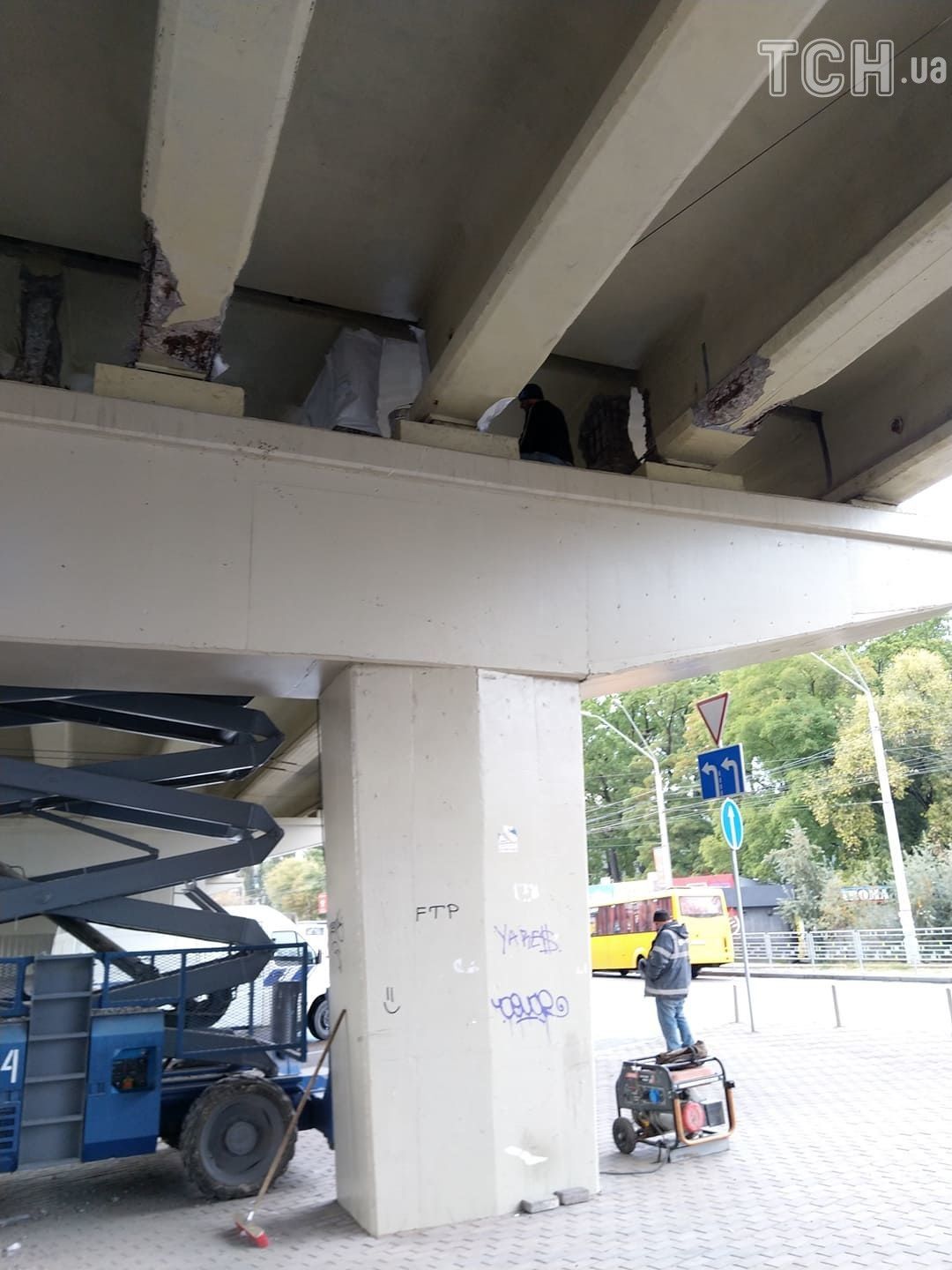 На мосту, що частково обвалився на "Нивках", почали ремонтні роботи