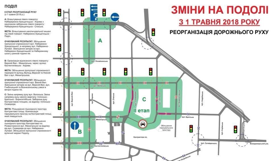 Нагадаємо, на Подолі у зв'язку з реставрацією змінюється схема руху автомобілів. Зміни набули чинності від 1 травня поточного року.