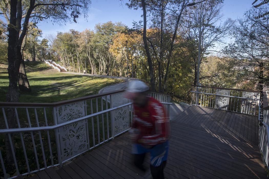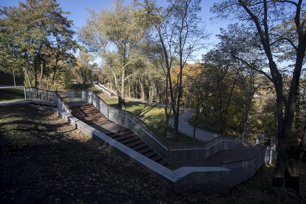 Окрім верхньої тераси, у рамках реконструкції Пейзажної алеї облаштували нижню терасу схилу та збудували нові гарні сходи на Воздвиженку. Вони зроблені в тій же стилістиці, що й сходи до урочища Кожум’яки, які відкрили три роки тому. Нові сходи також матимуть вечірню підсвітку.