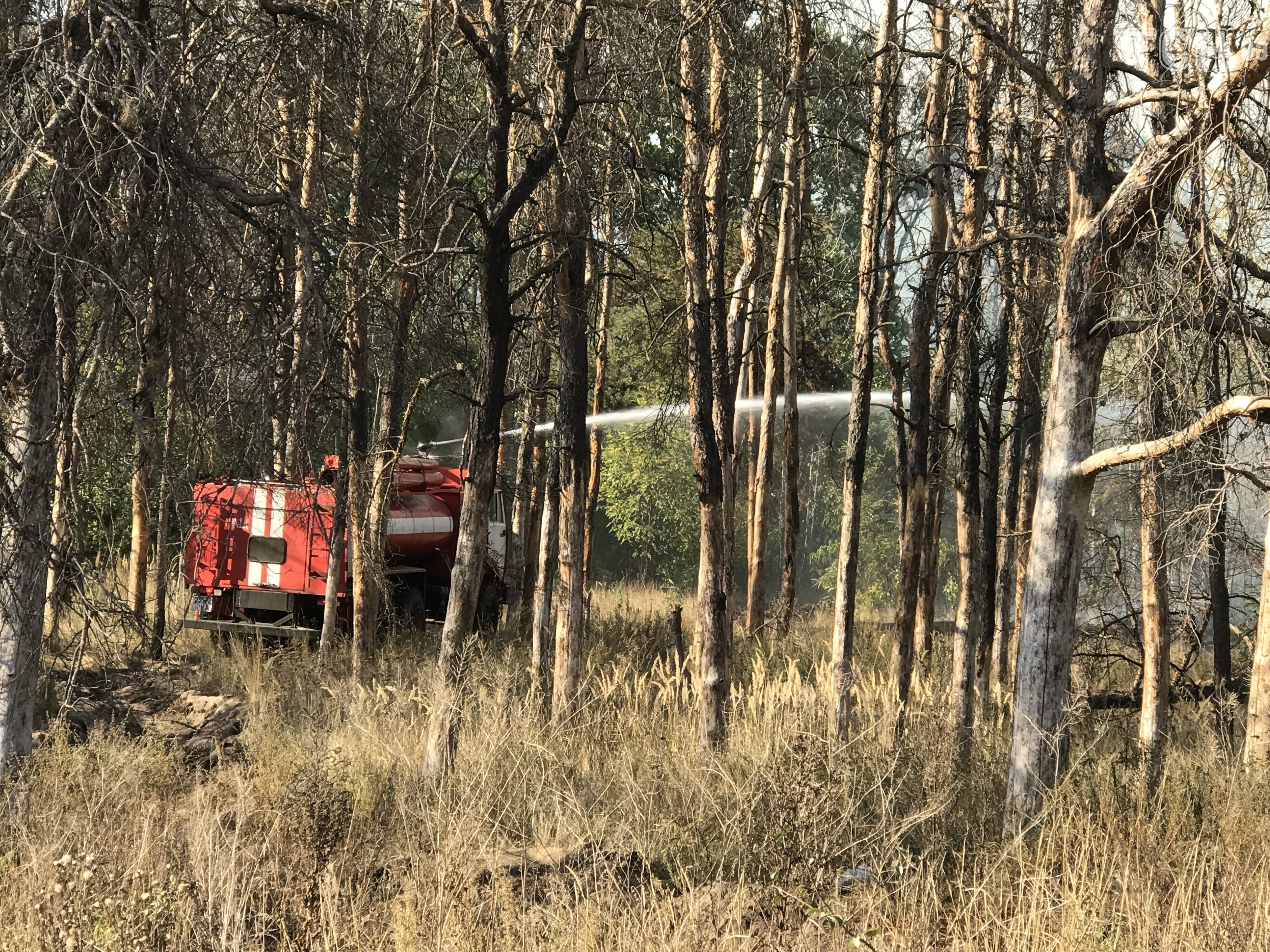 Вогонь охопив сотні квадратних метрів. Працівники лісового господарства проривають рівчаки, щоби вогонь не поширювався далі. Надзвичайники намагаються приборкати вогонь.