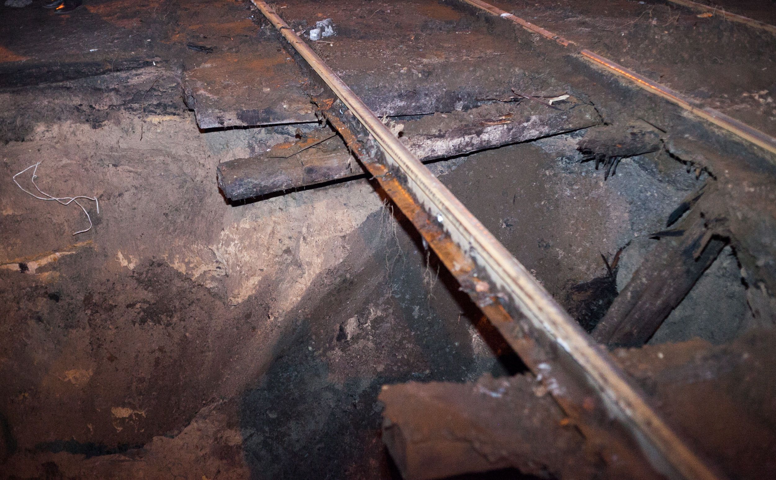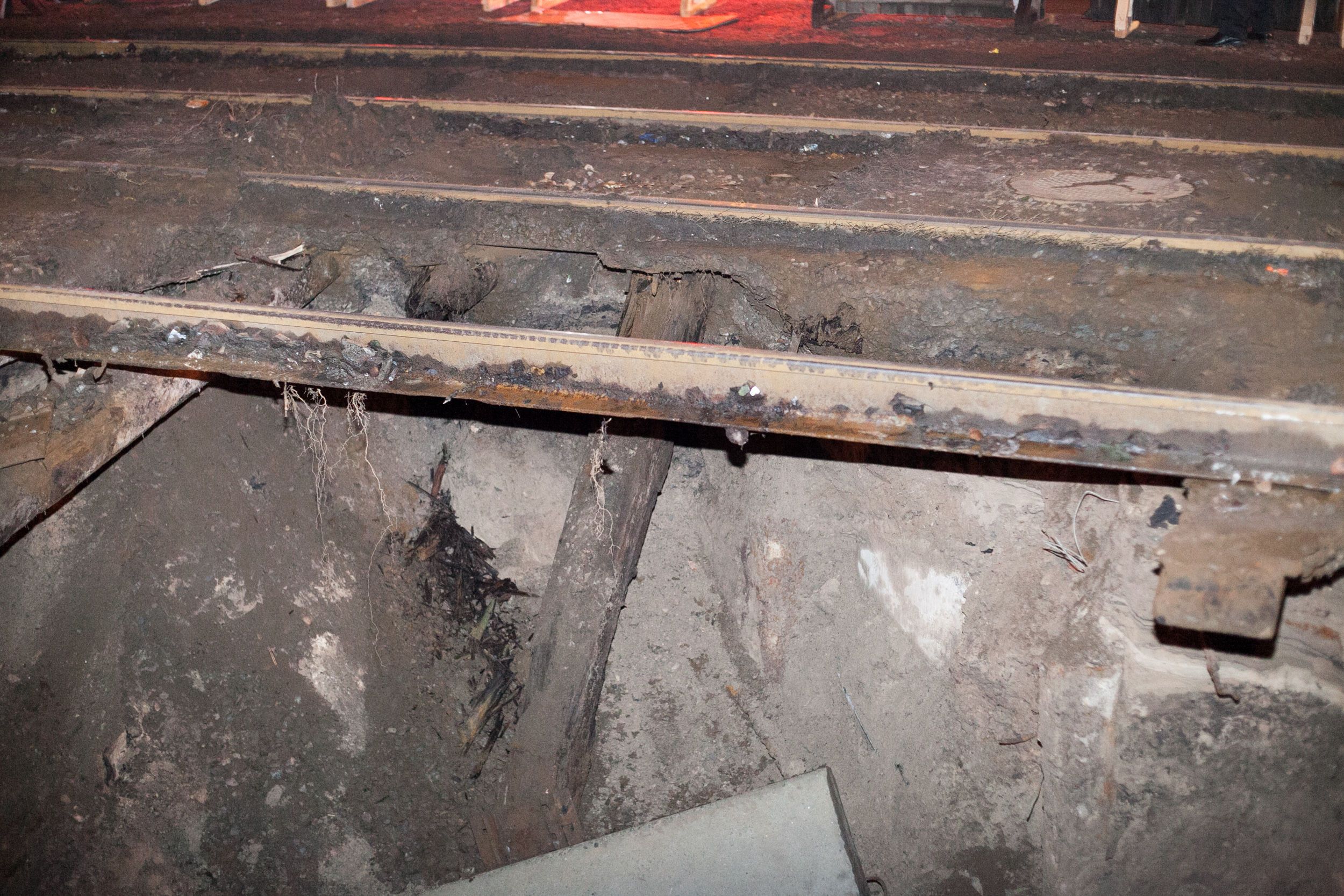 Коммунальщики объяснили, почему под трамвайными путями в Киеве провалилась огромная яма