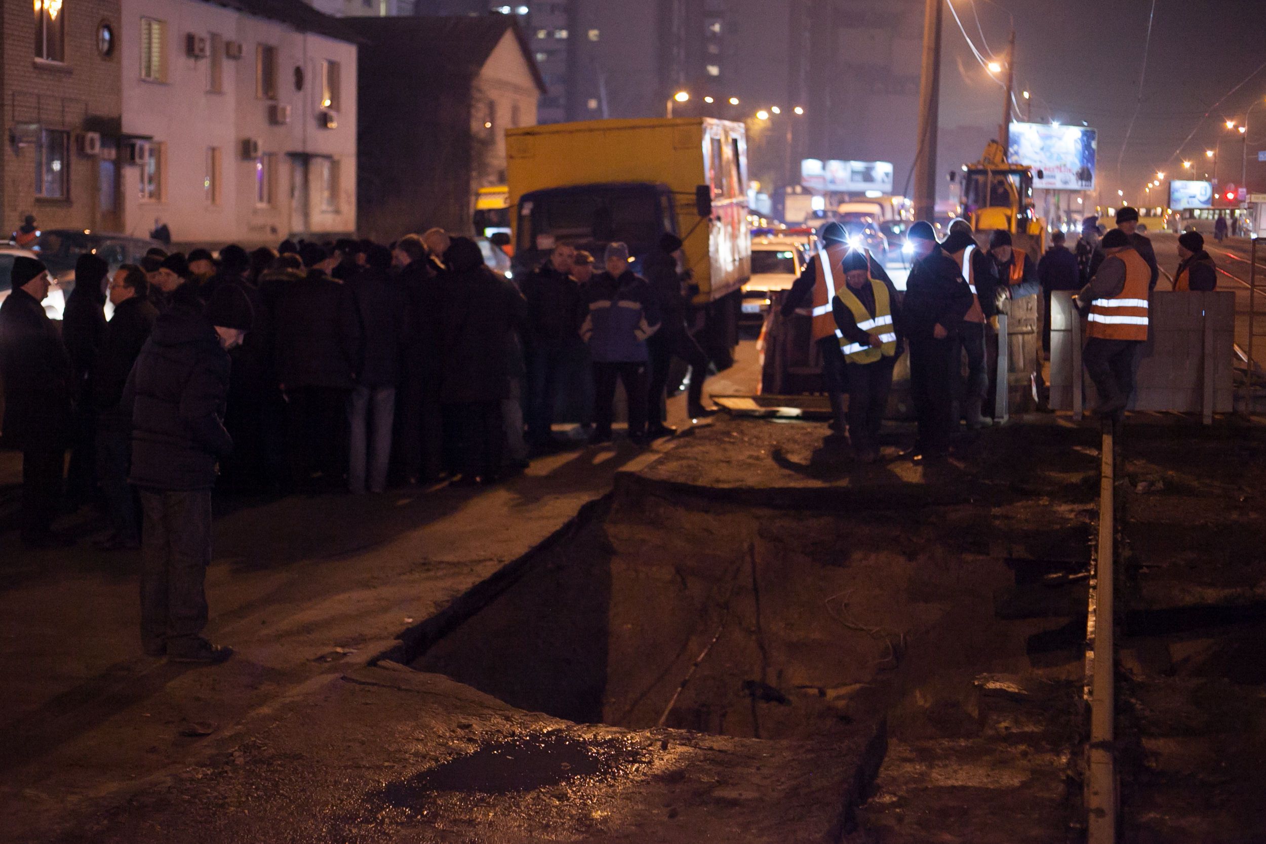 В пятницу, 15 декабря, на улице Тростянецкой в Дарницком районе Киева под трамвайными рельсами провалилась яма диаметром 6 метров и глубиной 3,5 метра.