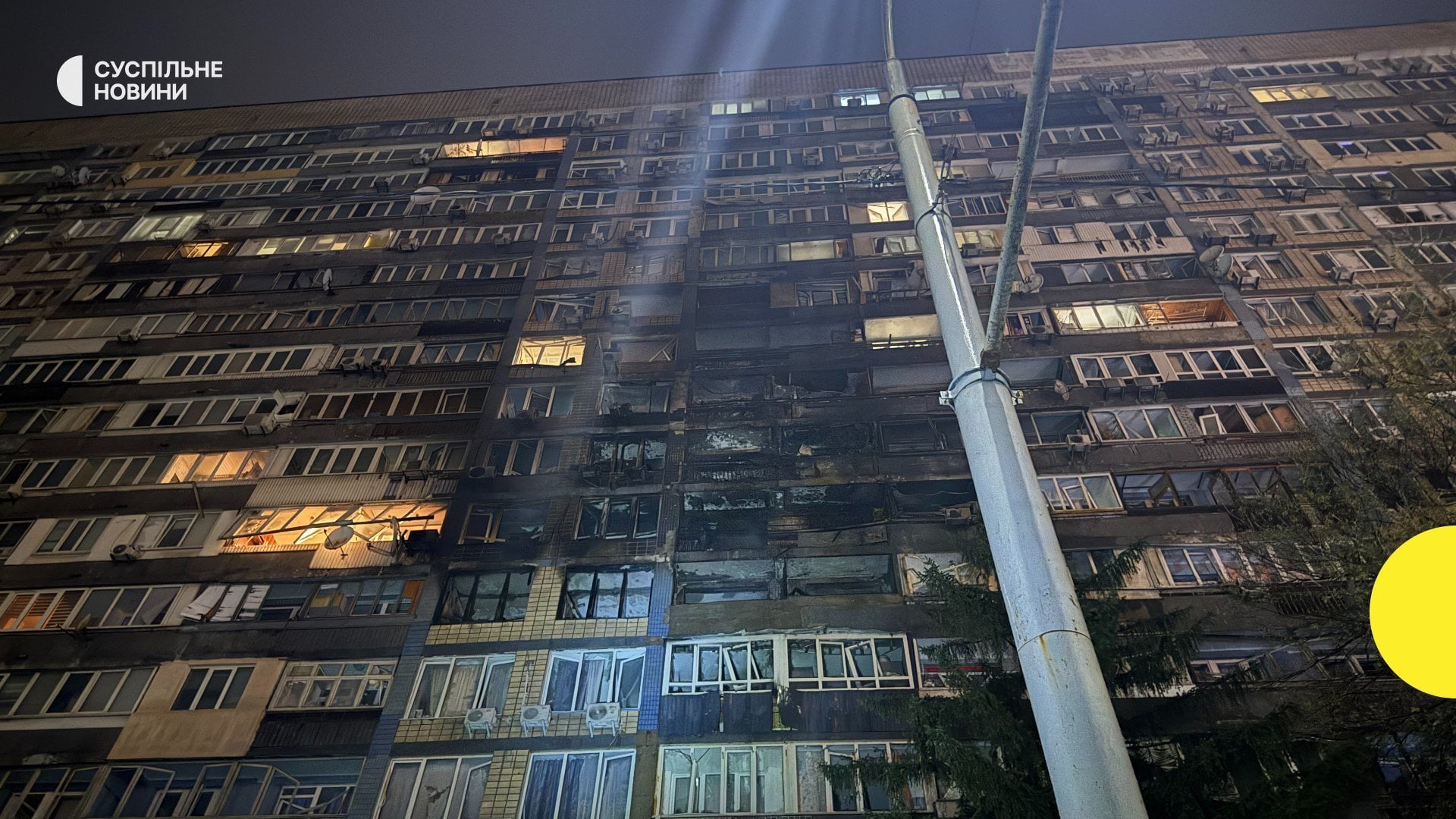 В Печерском районе обломки БпЛА попали в многоэтажный жилой дом. / © Суспільне