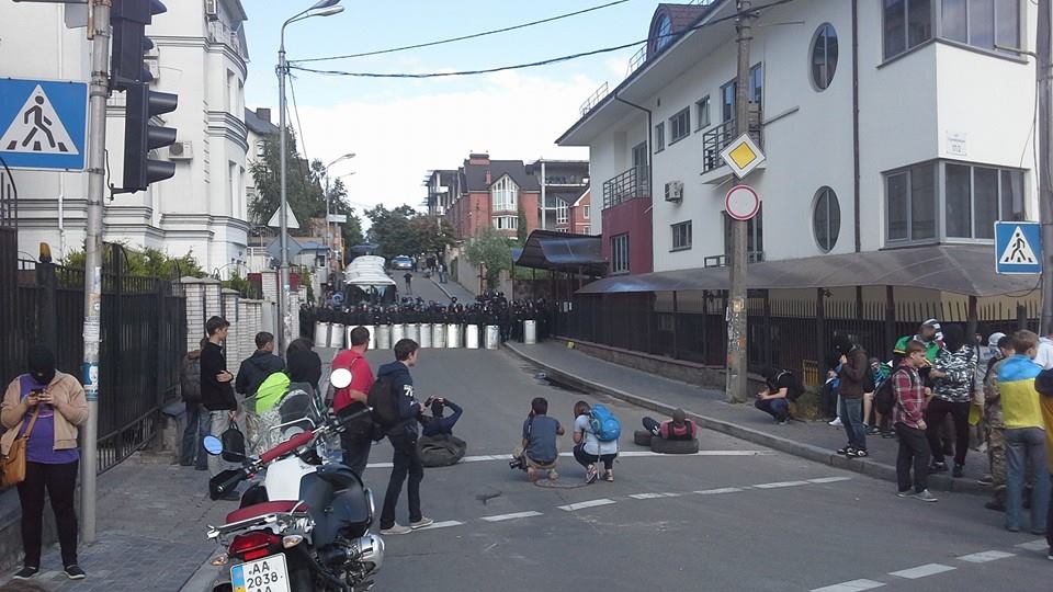 Как заявил ранее в воскресенье пресс-секретарь российского посольства в Украине Олег Гришин, более 50 человек пытаются прорвать оцепление правоохранителей, бросают камни в сторону здания по ул.Панфиловцев (Печерский р-н Киева) и выкрикивают антироссийские лозунги.