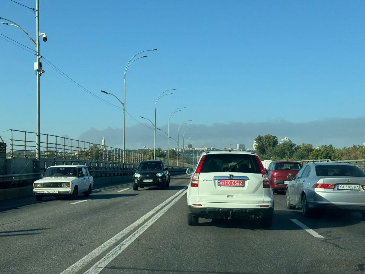 Заметим, после атаки в небе над Киевом виден дым.