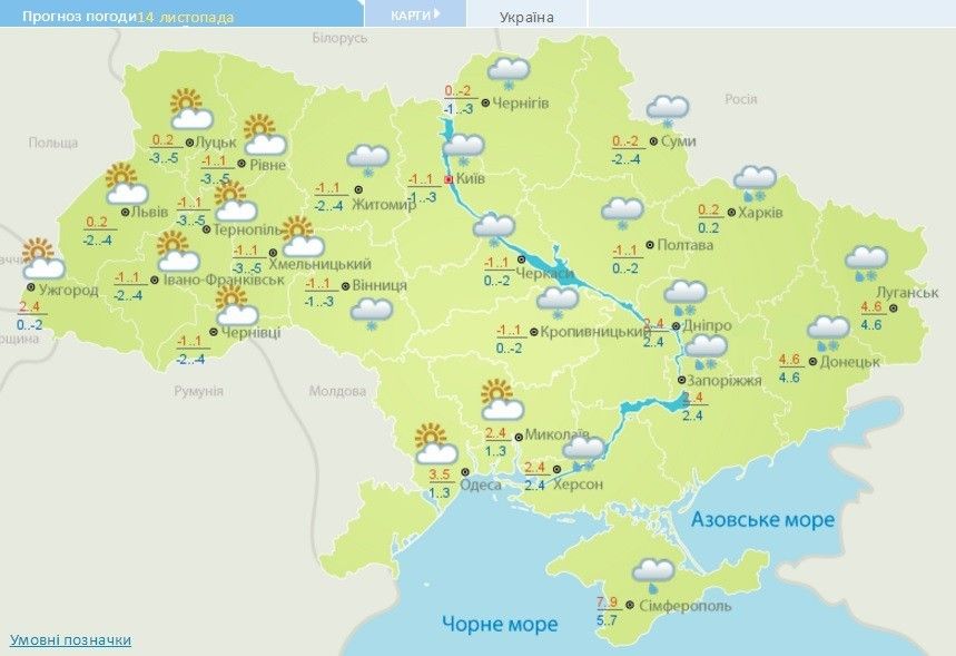 Прогноз погоды в Украине на 14 ноября 2016 года / © Укргидрометцентр