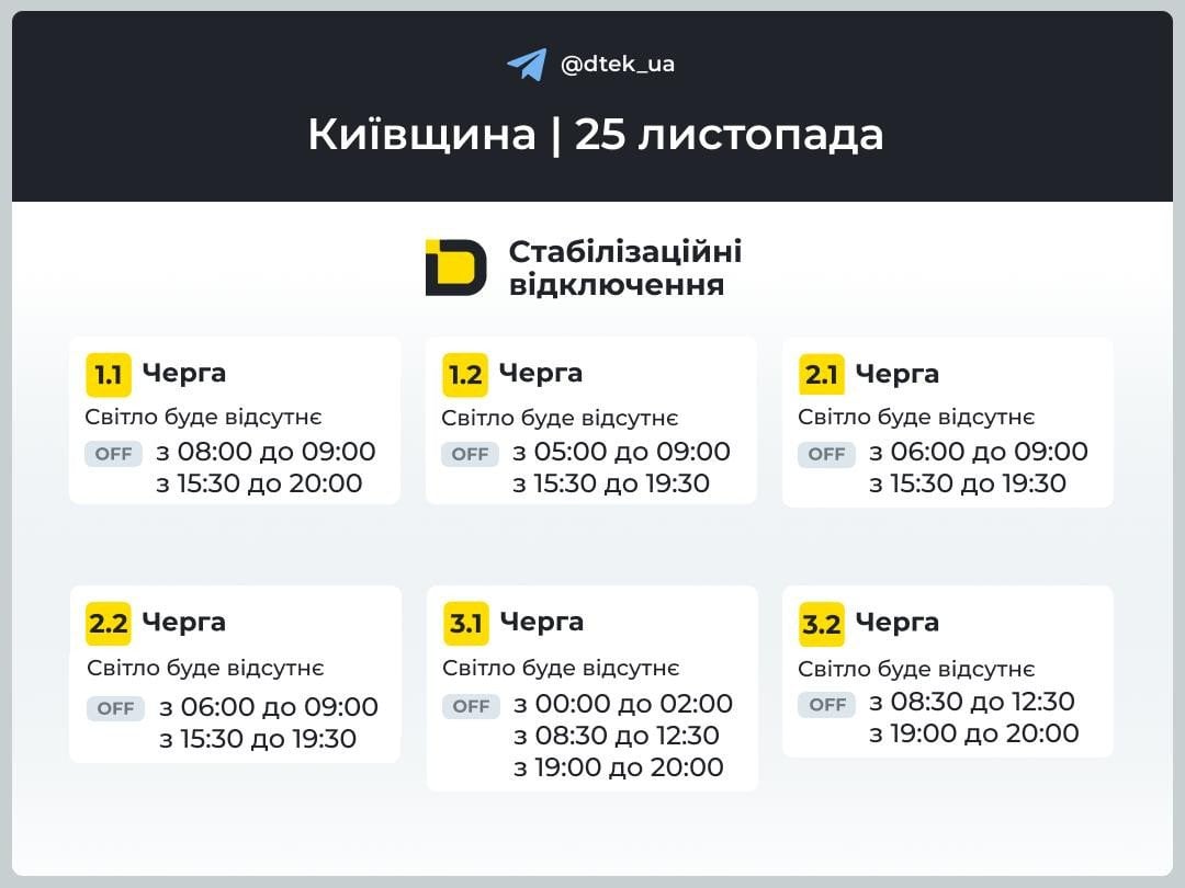 Ситуация в сети после ударов РФ остается непростой. Так, обнародовали новые графики отключений света в Киеве и Киевской области на 25 ноября.