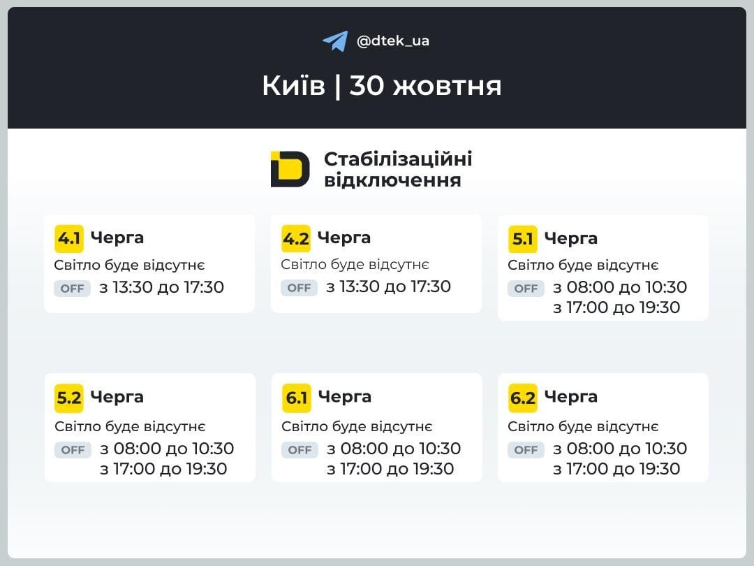 «Киев: по команде Укрэнерго переходим к стабилизационным графикам отключений», — говорится в сообщении.