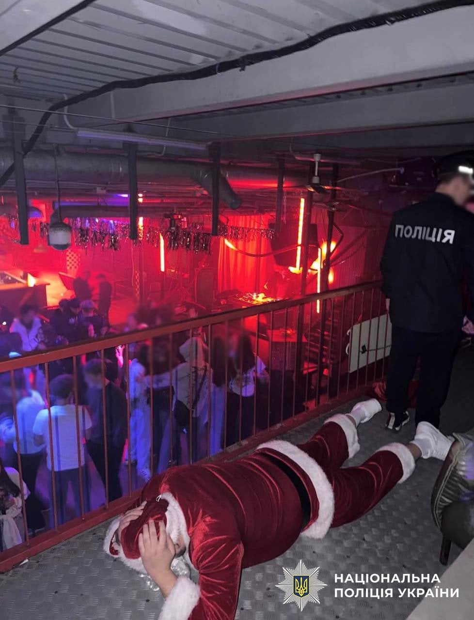 В одном из развлекательных заведений Киева во время шоу инсценировали задержание Санта Клауса. При этом мужчина, который «задерживал правонарушителя», был в форме полицейского.