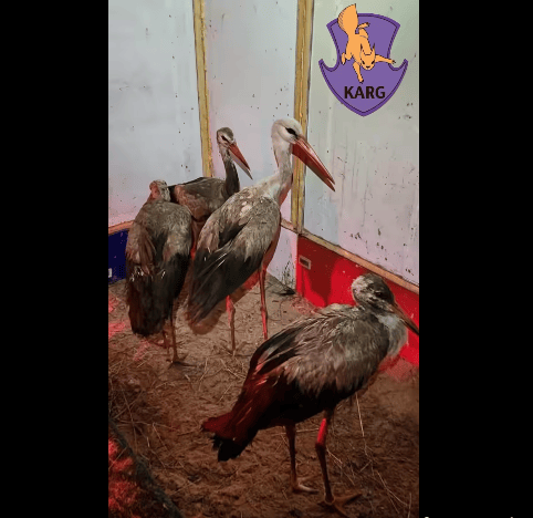Волонтеры спасла аистов на городской свалке. Птицы были полностью загрязнены.