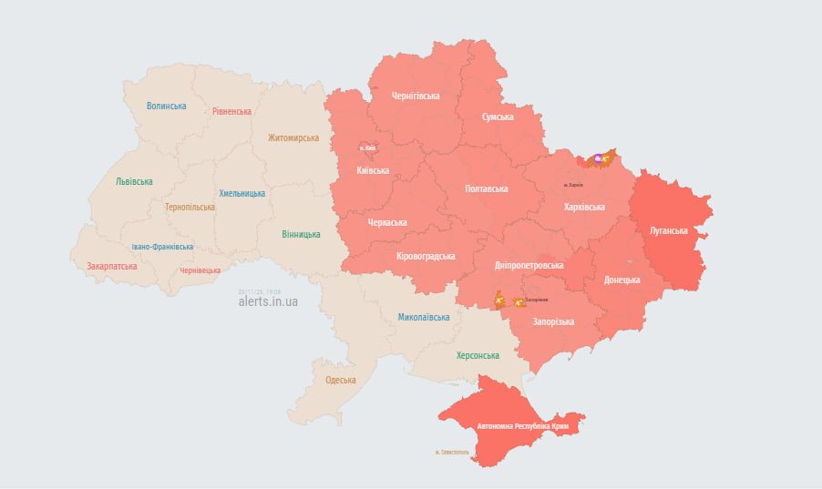 В четверг, 20 ноября 2025 года, в Киеве и ряде центральных, восточных и северных областей Украины объявлена воздушная тревога.