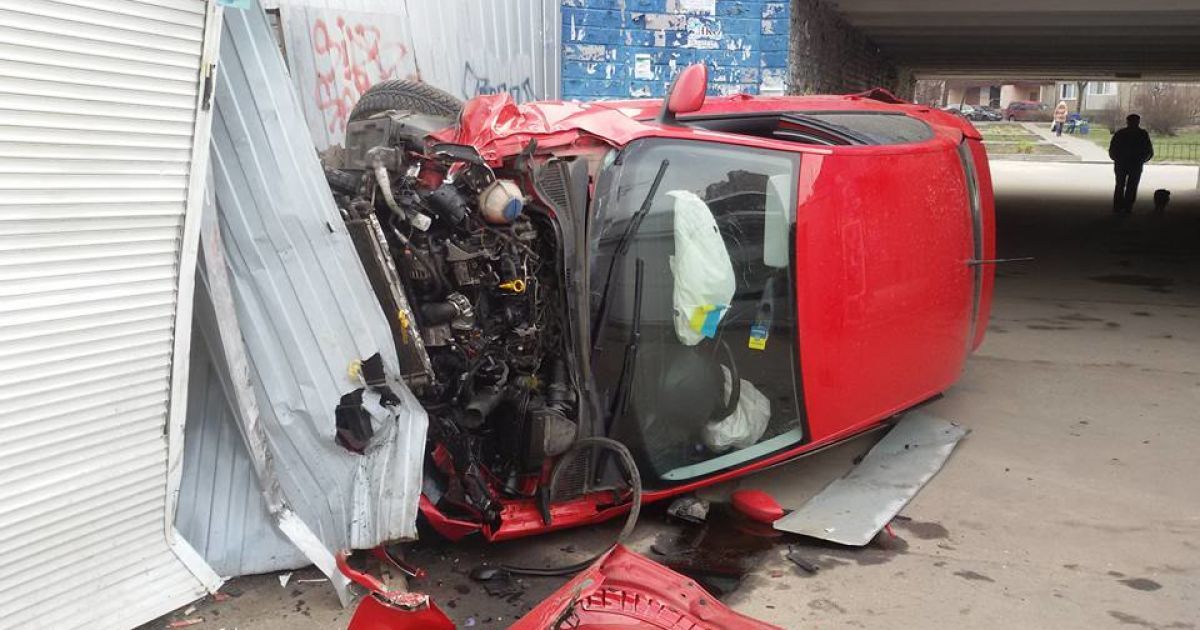 В Киеве пьяный водитель Skoda вылетел с дороги в подземный переход и разбил киоск
