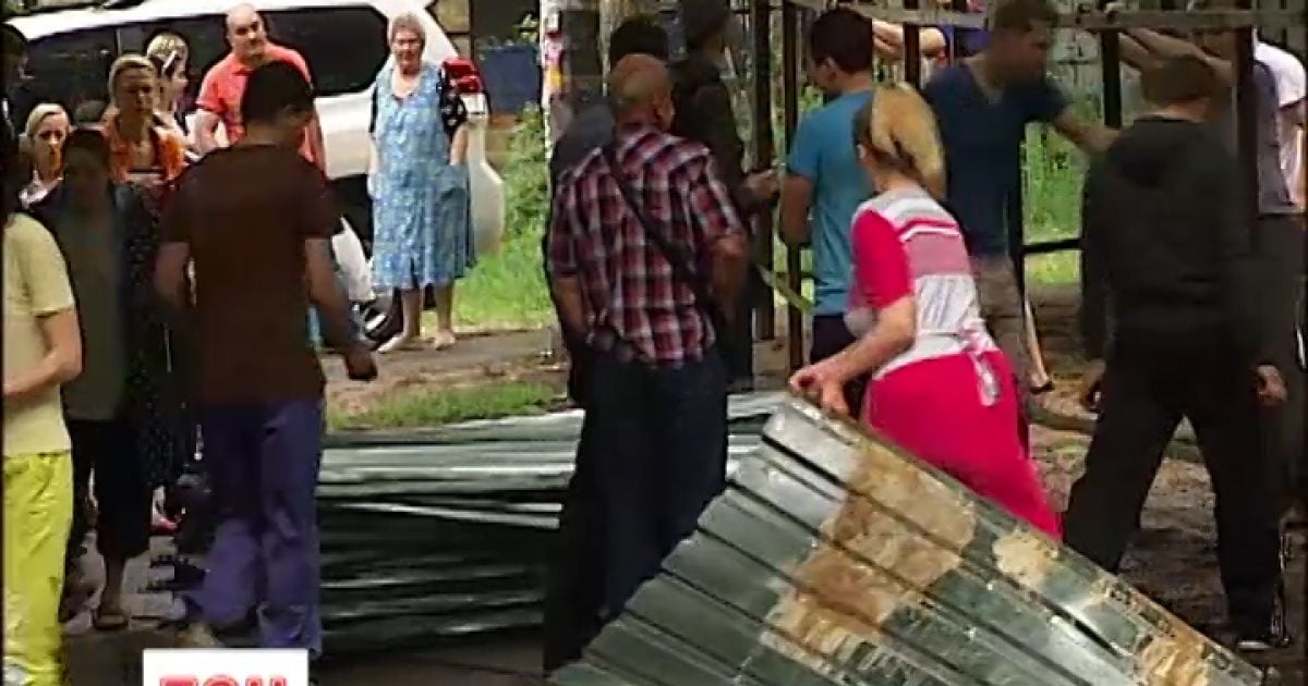 В Киеве возмущенные жители с топорами снесли строительный забор, чуть не досталось милиции