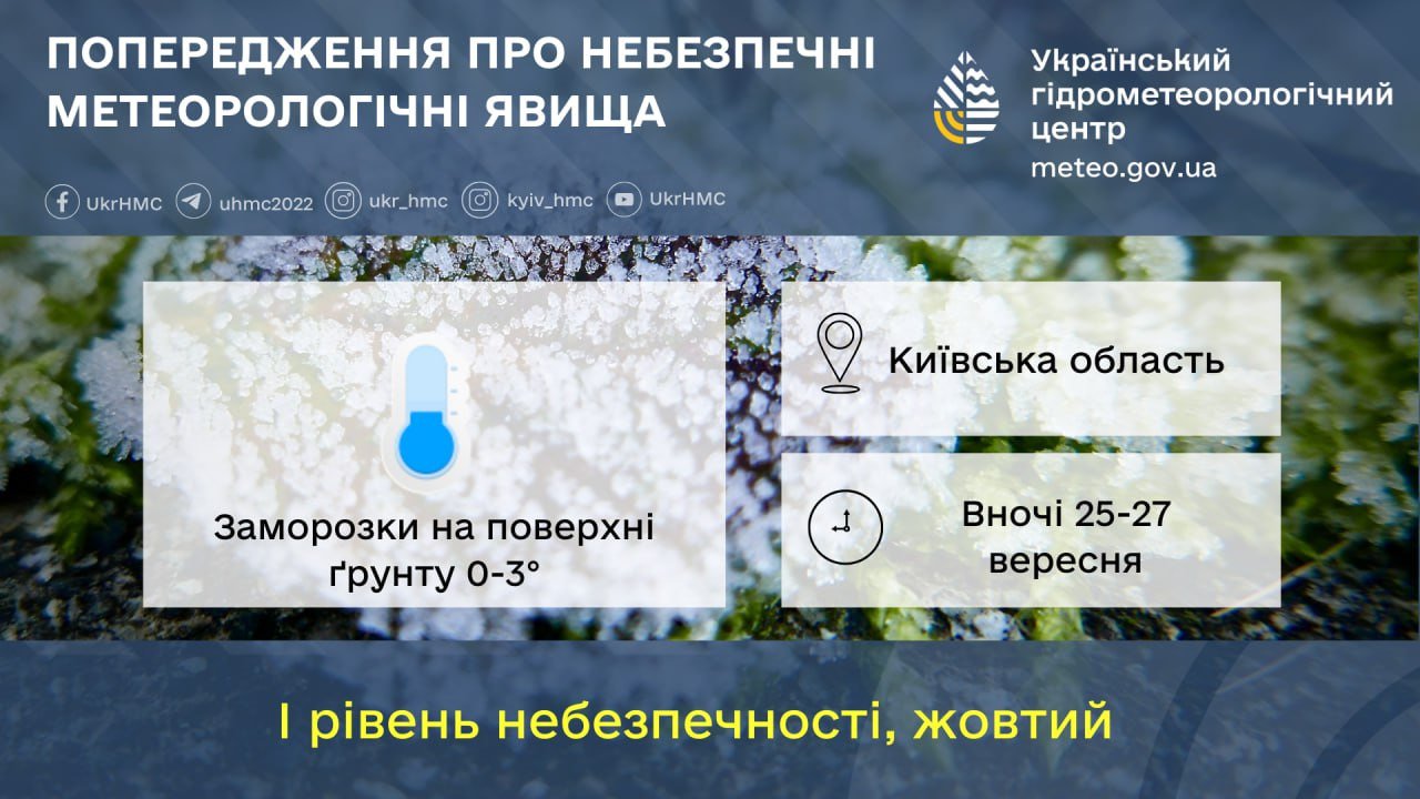 В Киевской области ожидаются первые заморозки