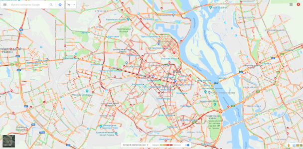 В сторону Петровки транспорт почти не движется. От Чоколовки по улице Елены Телиги до проспекта Лобановского скорость не превышает 3 км/час. Вблизи аэропорта "Киев" ситуация не лучше – пробки парализовали Севастопольскую площадь. С Житомирской трассы в сторону центра также мертвый затор.