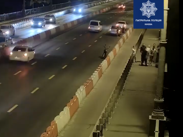 В Киеве девушка хотела прыгнуть с моста Патона в реку. Ее спасли патрульные Киева.