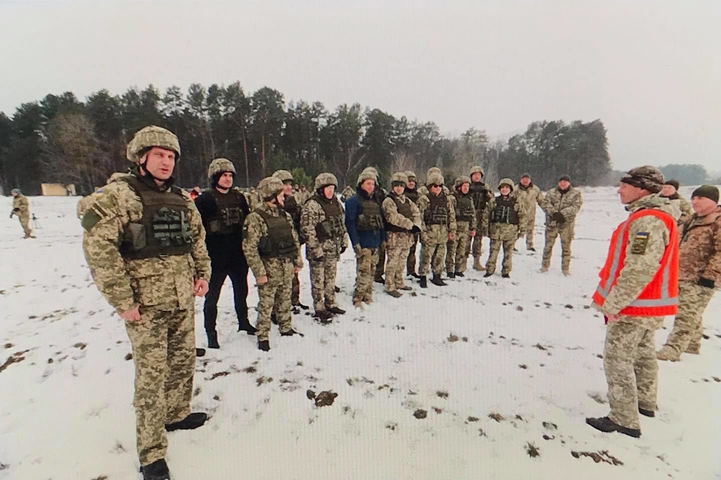 В субботу, 13 марта, мэр Киева Виталий Кличко, заместители главы КГГА и главы районов столицы приняли участие в военных учениях в учебном центре "Десна".