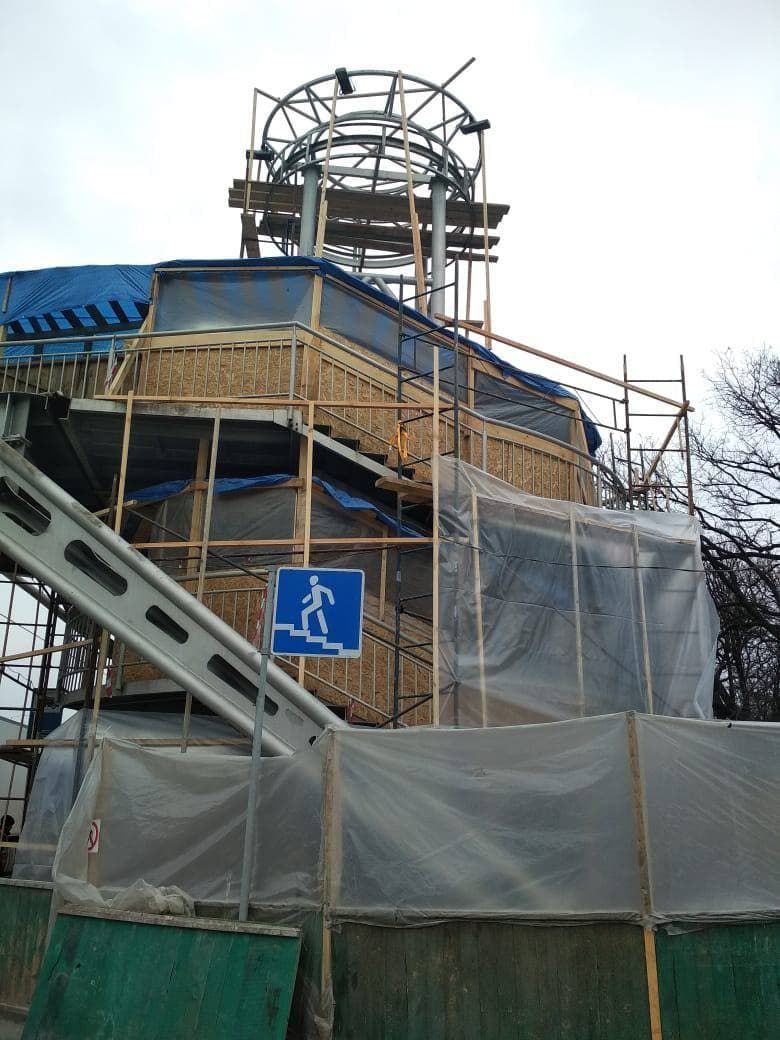 Вокруг конструкций путепровода уже возвели тепляк — конструкцию, которая будет защищать металлические элементы моста от влаги на время ремонта.