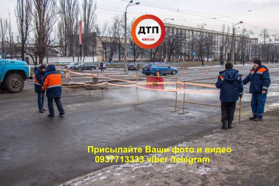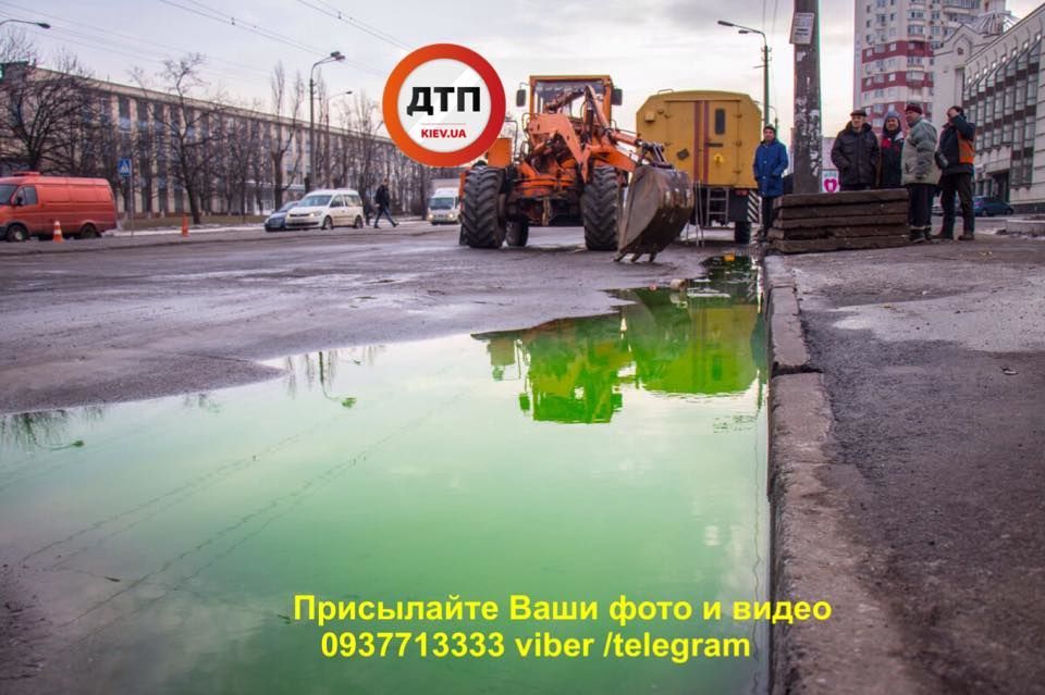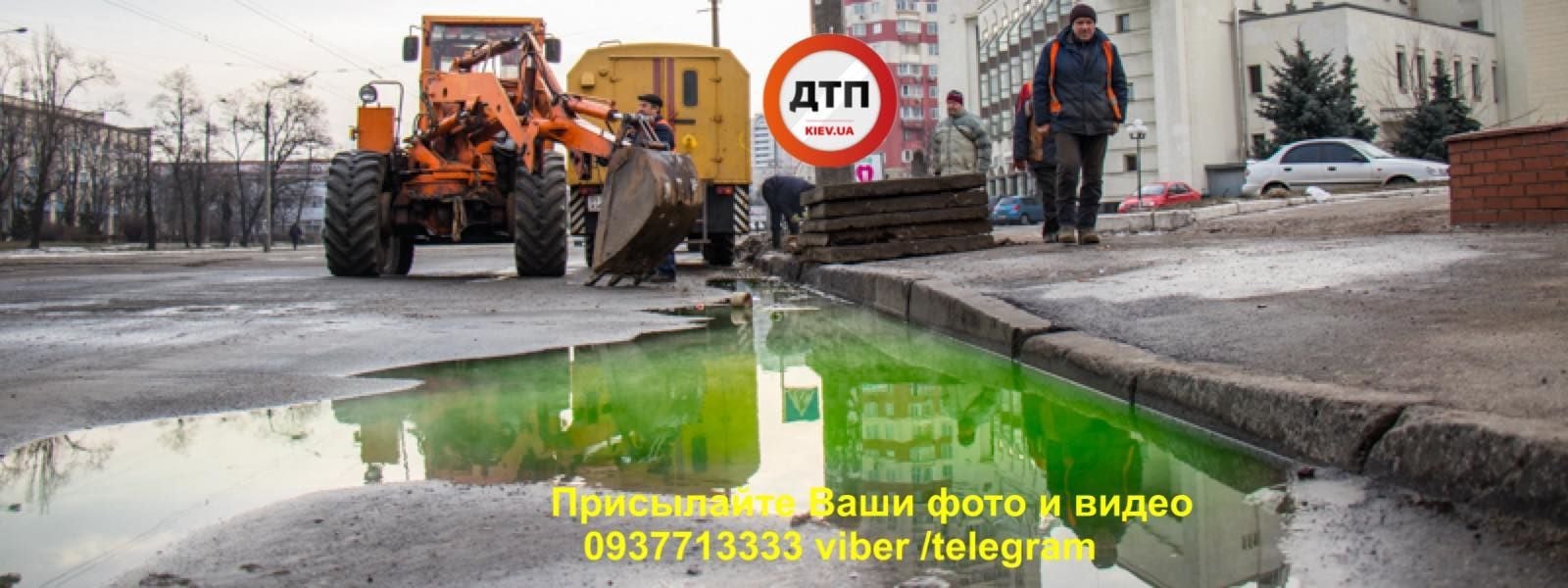 На одной из столичных улиц в четверг, 8 февраля, произошла авария на теплосети, в результате чего по улице потекли реки зеленой воды, пишет dtp.kiev.ua.