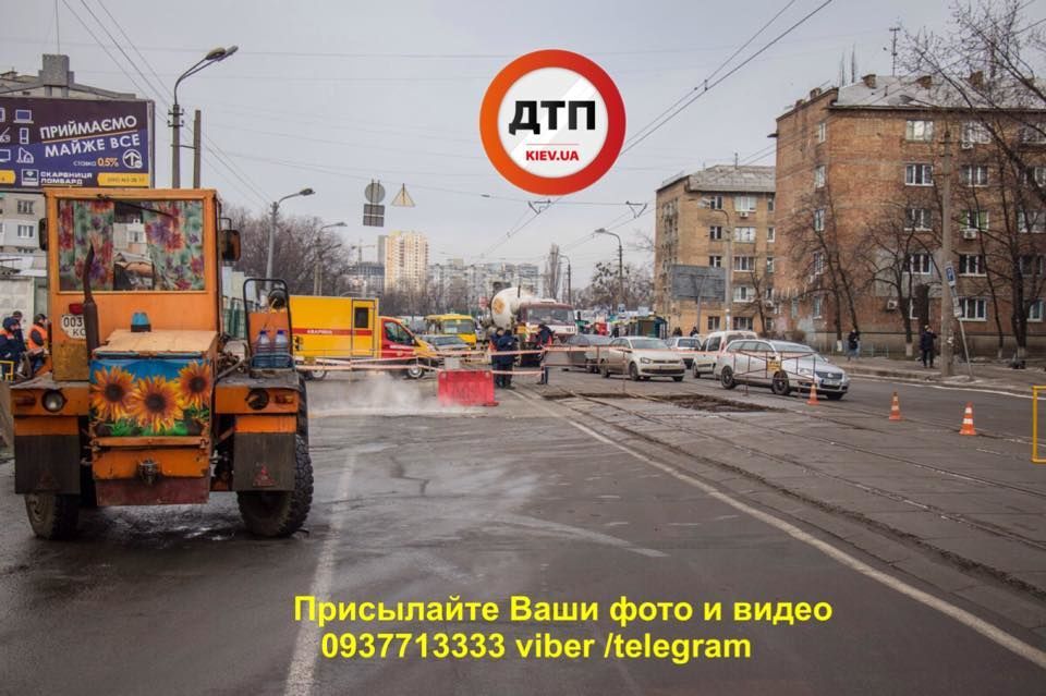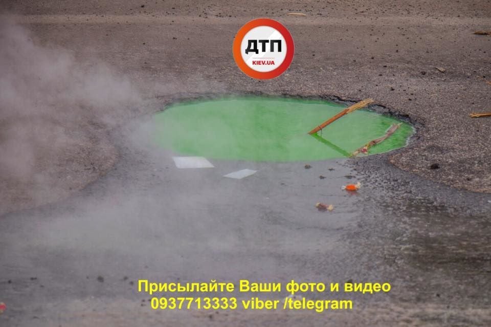 В Киеве прорвало теплосеть, в результате чего по улице текли реки зеленого кипятка